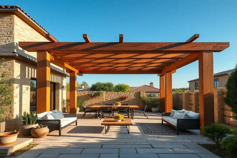 Le teck indonésien ou birmane offre un excellent compromis. Sa richesse en huiles naturelles le rend très résistant à la pourriture et aux insectes (durée de vie : 20-25 ans). Esthétiquement, sa teinte dorée-miel apaise l'œil et s'intègre élégamment à tout jardin. Le prix moyen s'établit entre 600 et 900 € pour une pergola bois terrasse standard. Entretien minimal : un ponçage tous les 3 ans et une lasure protectrice suffisent. C'est le favori des propriétaires qui recherchent qualité et praticité équilibrées.