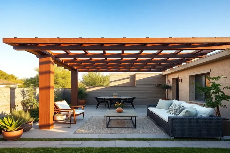 Pensez à l'espace nécessaire pour un canapé d'extérieur (1,5 × 0,8 m), une table (1 × 1 m) et du passage. Si vous envisagez des plantes grimpantes (vignes, clématites, lierre), elles ajouteront 20 à 30 cm de profondeur esthétique. Pour une terrasse de 15 m², une pergola de 3 × 3 mètres accommodera confortablement ce mobilier. Pour du 20 m², optez pour 3,5 × 4 mètres minimum. Évitez de surdimensionner : une pergola surdimensionnée coûte 30 à 50 % plus cher en structure et matériaux (acier ou bois traité).